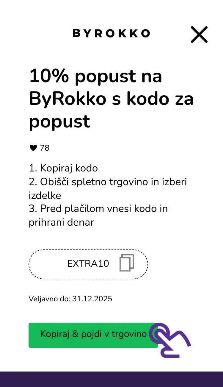 Dodatne možnosti za prihranek pa lahko izkoristiš s pomočjo naših ByRokko kod za popust. Vse trenutno aktivne kode in popuste lahko najdeš na našo spletni strani nad tem besedilom Klikni na kodo, ki ti odgovarja, jo kopiraj in uporabi med plačilom na ByRokko spletni strani. Z našimi kodami za popust lahko občasno prihraniš do 40% pri določenih izdelkih in kategorijah.